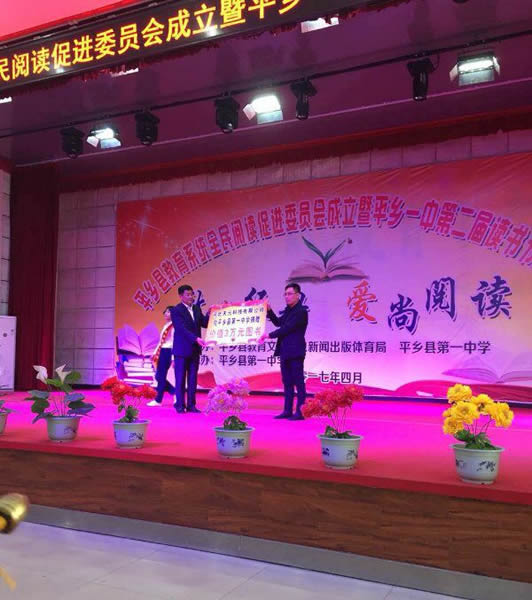 公司參加由平鄉(xiāng)縣教育文化新聞出版體育局和平鄉(xiāng)縣第一中學(xué)聯(lián)合舉辦的愛(ài)尚閱讀活動(dòng),并向平鄉(xiāng)縣第一中學(xué)捐贈(zèng)價(jià)值三萬(wàn)元的圖書。